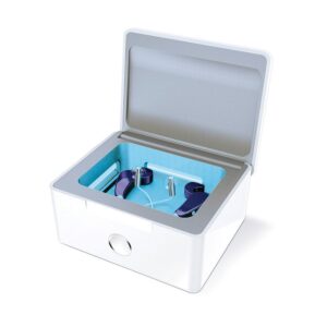 The Signia PerfectDry Lux is a compact electronic drying and UV-C disinfection unit that eliminates 99% of viruses and bacteria while gently drying your hearing aids in as little as 30 minutes.